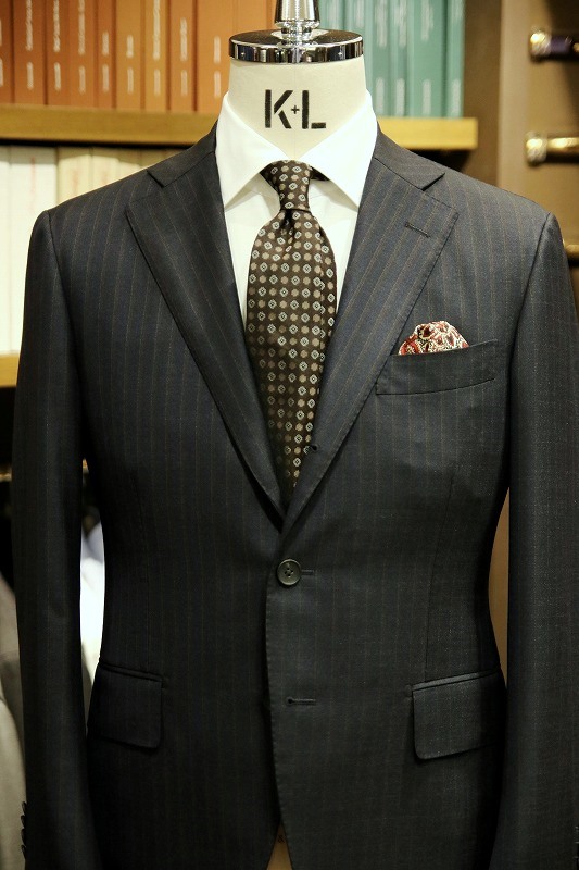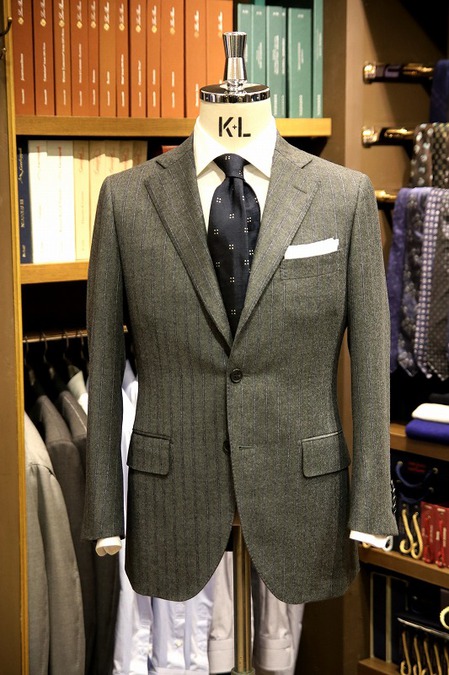 もう1着は、冬用ということで、LORO PIANAのWOOL&CASHMERE FLANNELSのコレクションから、ミディアムグレーのストライプを選びました。