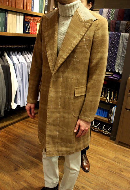 昨年もベビーカシミヤのビスポークジャケットを作っていただきましたが、今シーズンは、カシミヤのコートをご注文いただきました!!!