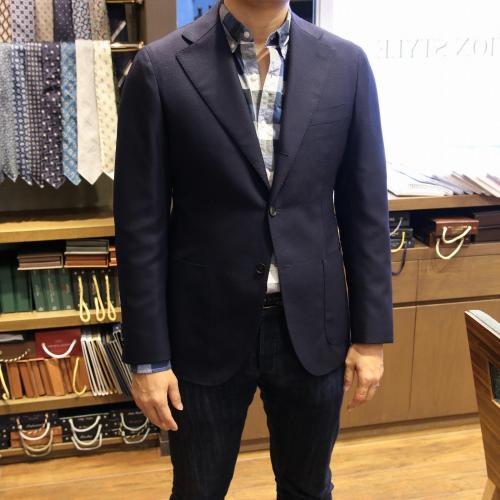 続きましては、今シーズン、スーツ2着&ジャケット2着をオーダーいただきましたお客様で、いつも後回しにして忘れがちなネイビーのホップサックのジャケットを今シーズンは、しっかりとオーダーいただきました!