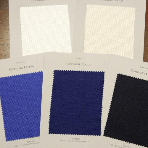 実は、LORO PIANAの元のコレクションにはブラウンやグリーンといった他の色もございますが、バンチブックとしてシーズン中にオーダーできる生地は、ネイビー3色、ブラック1色の計4色のみになります。