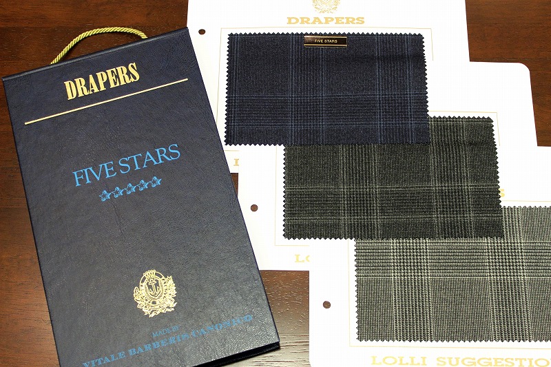 このFIVESTARSの生地の特徴は、330g~370g/mとイタリア製の生地の中では比較的ヘビーウエイトな生地で、しっかりとして、落ち感があり、非常に仕立て栄えがします。