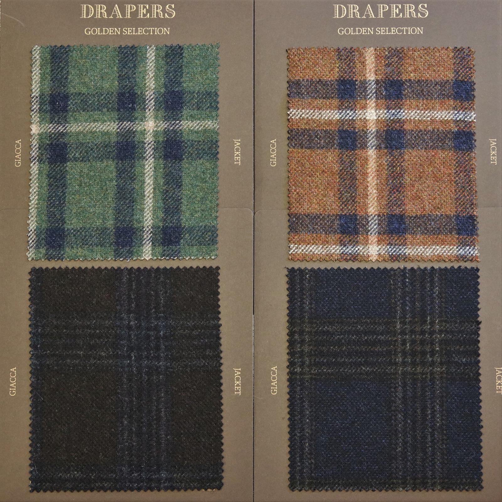 余談ですが、英国におけるDRAPERSのエージェント(代理店)は、ハリソンズ(リア・ブラウン&ダンスフォード)であり、以前にハリソンズのジェームス社長に聞いたところ、DRAPERSのSUPERBIO(370g/m)などのイタリア製でありながらも英国生地のようなしっかりとした風合いの生地は、英国でも人気で売れているとのことでした。