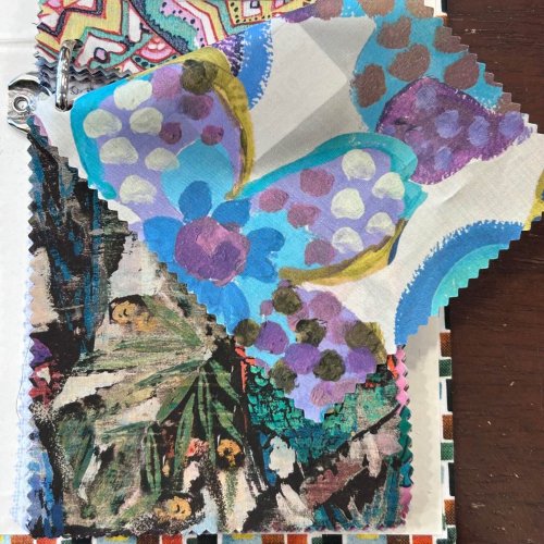 ポプリンのプリントとはまた違うタッチの柄ですね!絵画のような柄もございます!