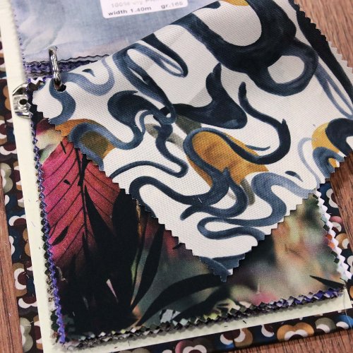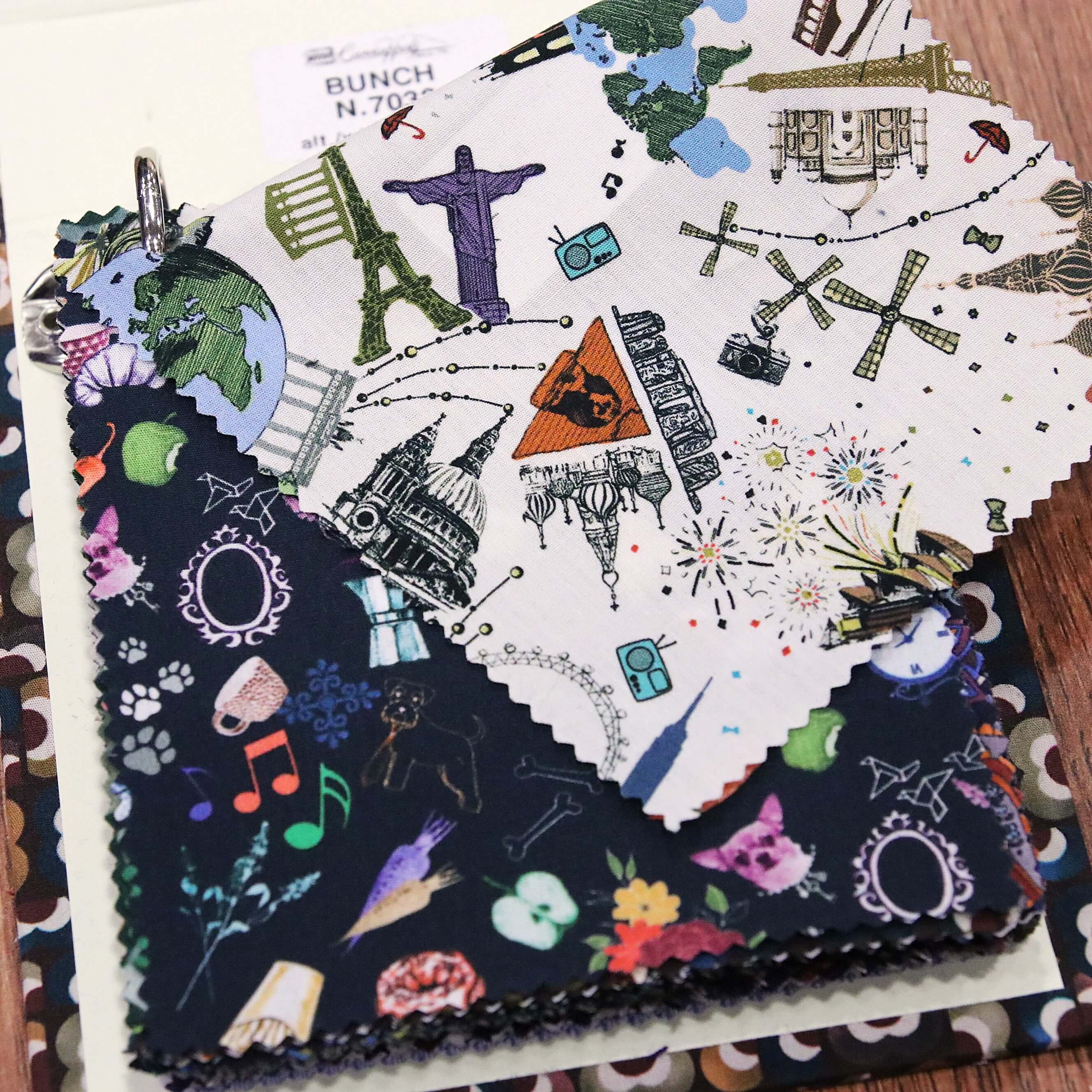 150g/mの比較的軽いポプリンのプリントで、個性的な色柄が14柄。