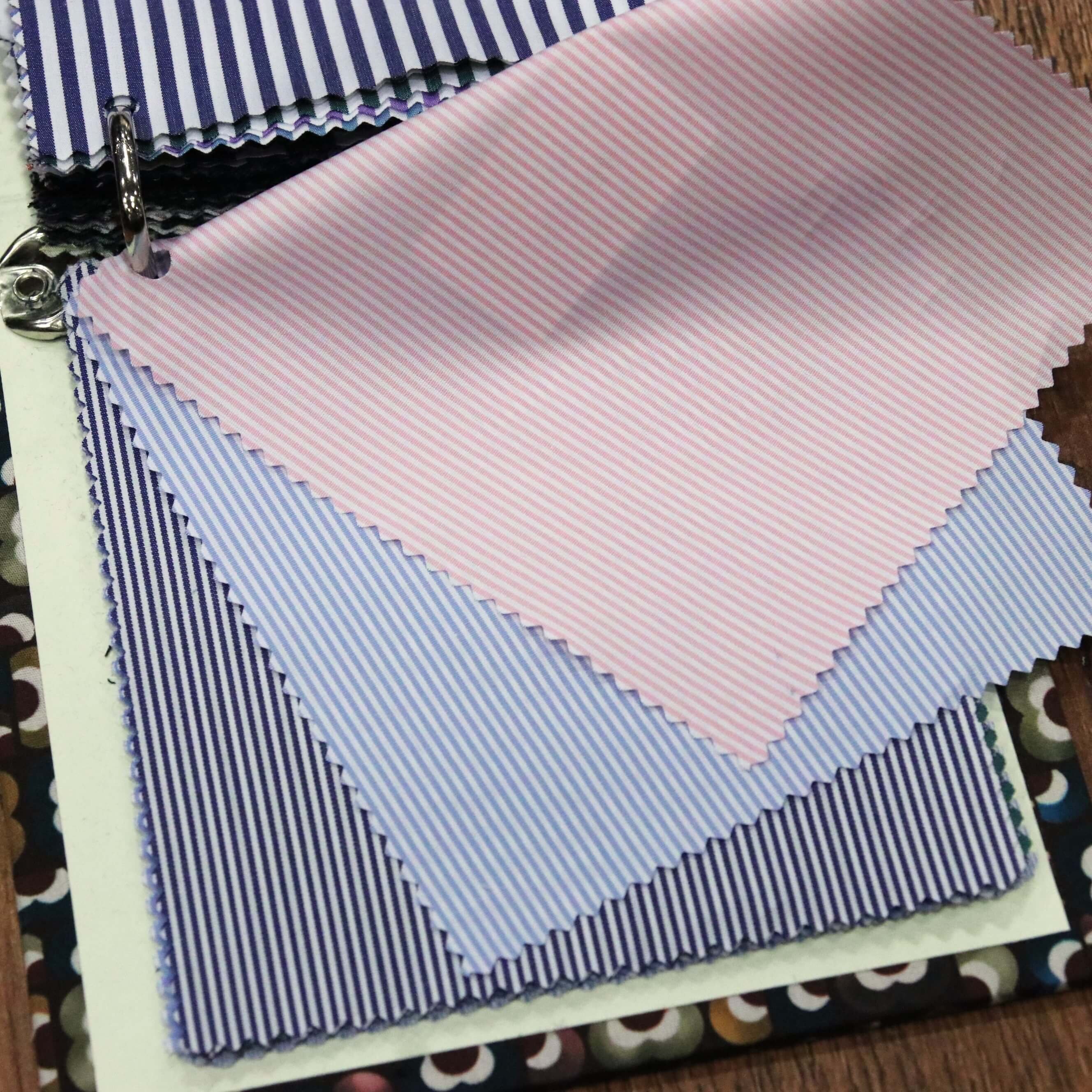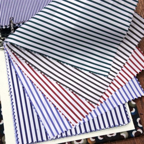 続きましては、100番手双糸(100/2-100/2)のポプリンで、ロンドンストライプが6色。