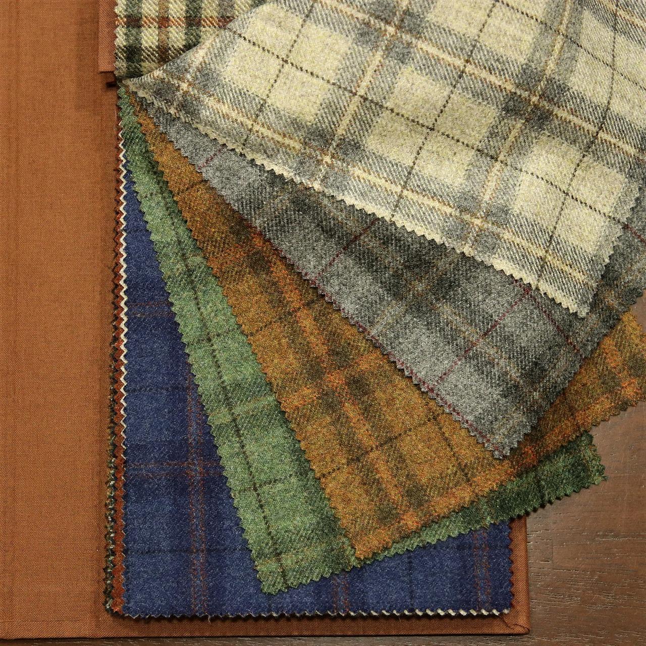 きれいな配色のチェック柄が非常に多いです!トレンドも意識されているので、グリーンやレッドの生地もございますが、素材が良いので悪目立ちせずにとても上品ですね!