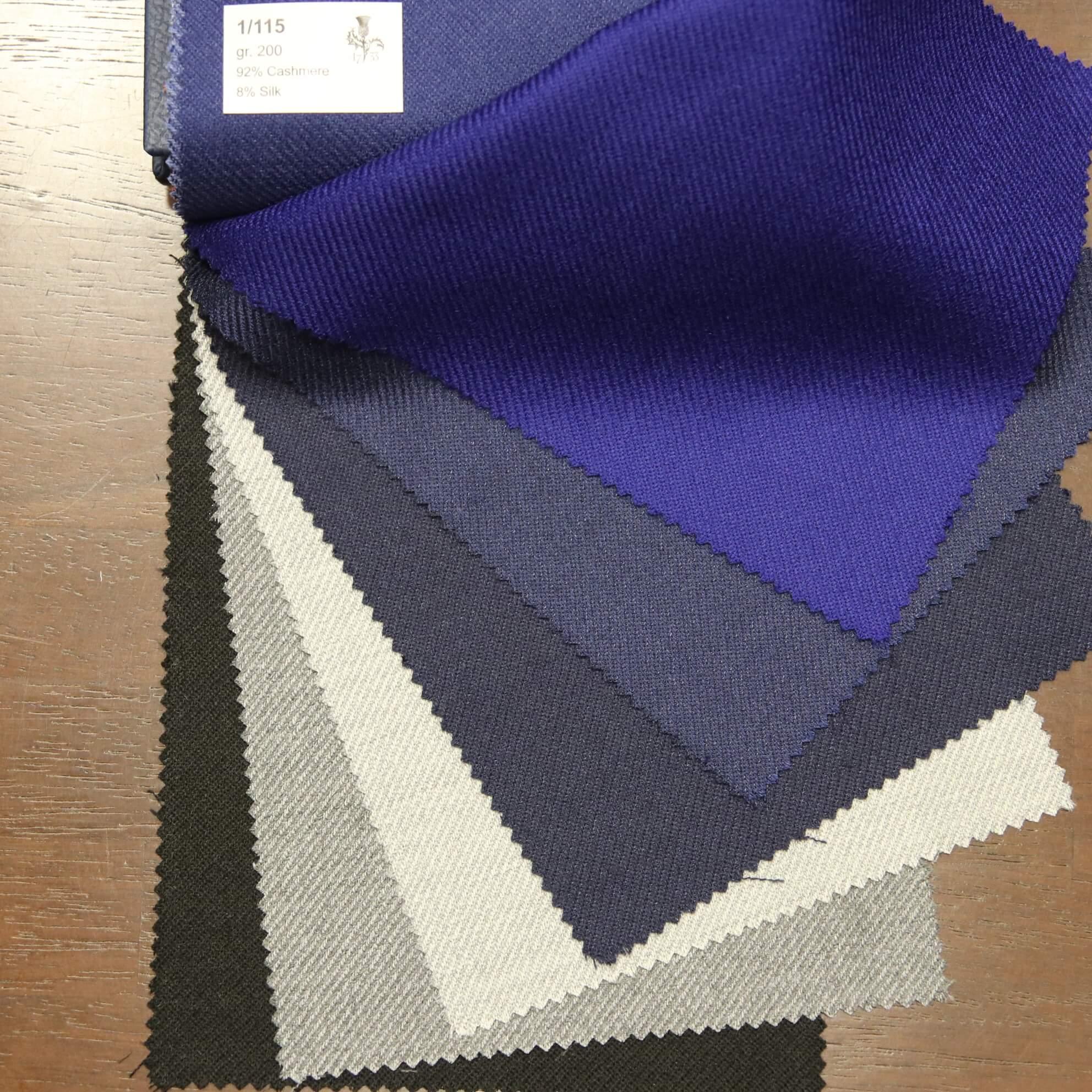 コンポジションは、92%CASHMERE&8%WOOLで、目付が200g/mのツイルです。