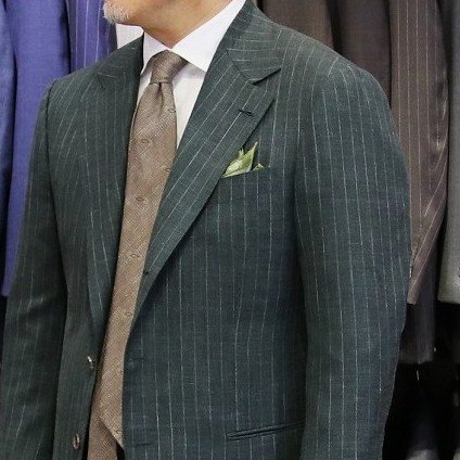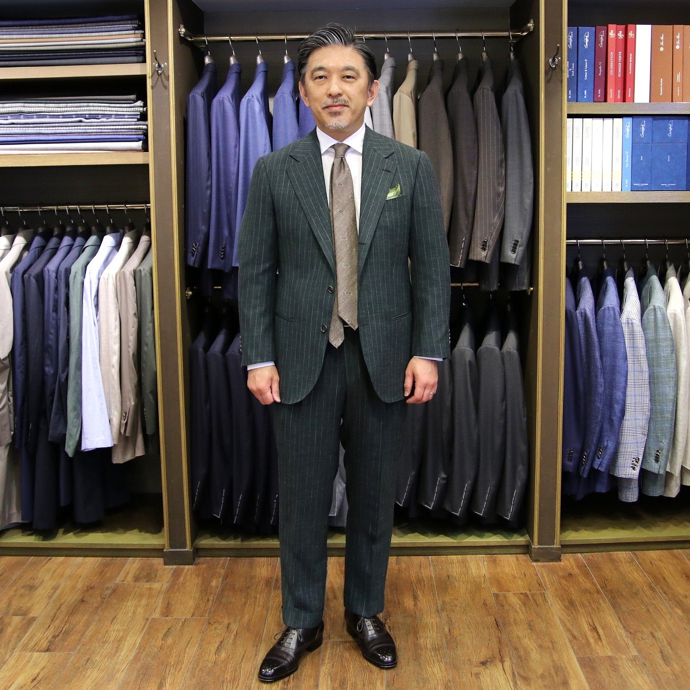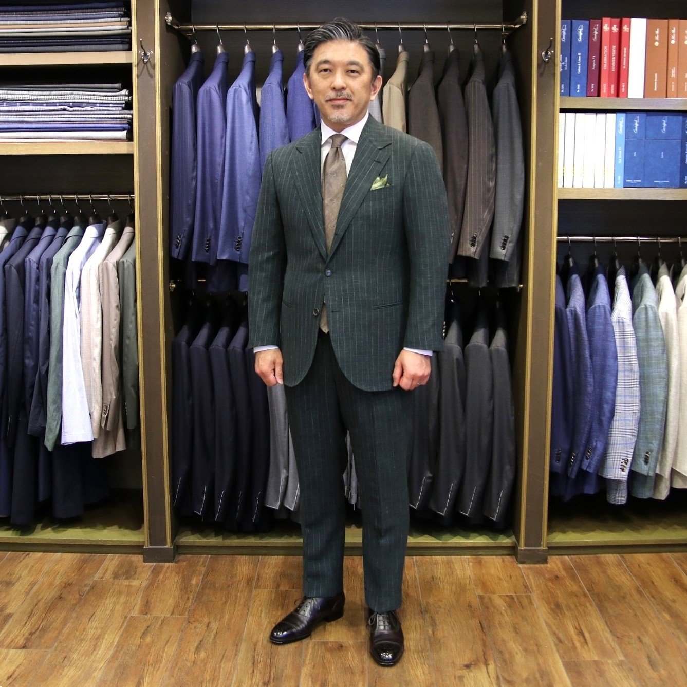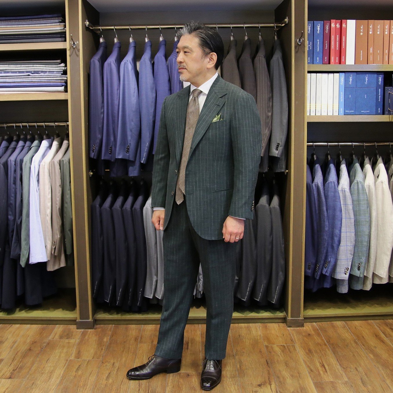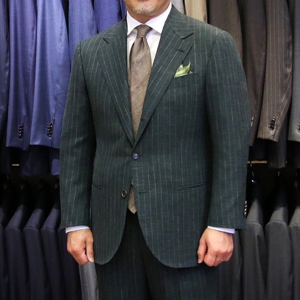 カジュアル感の強いコットンスーツやリネンスーツでは、グリーン、オリーブ、カーキなどの色は比較的多いですが、ウールベースの生地でグリーンのスーツが増えてきたのは、とても興味深く、30年以上、オーダー業界に居て初めてですね。