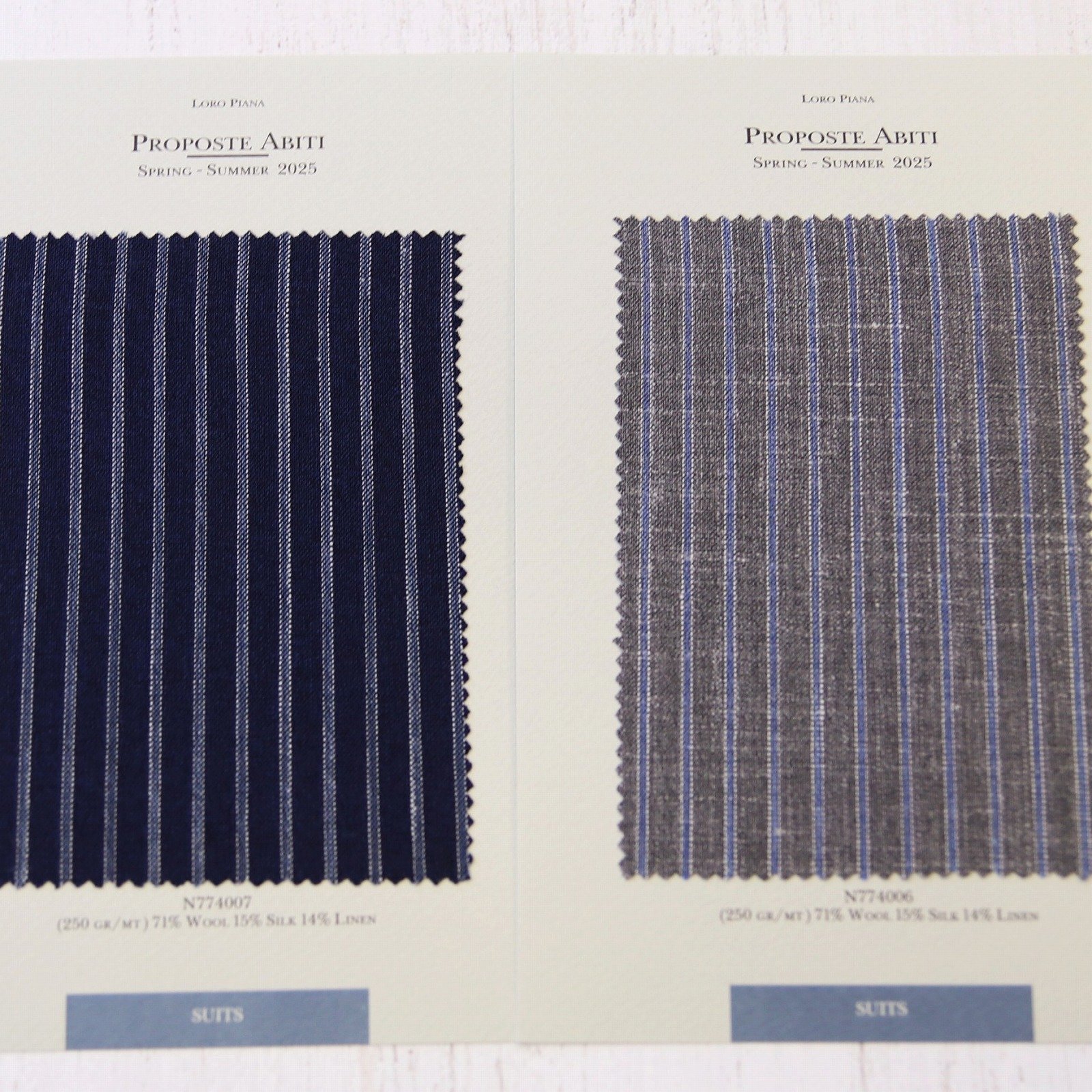 2025年春夏シーズンは、私がオーダーしたジャケット生地として、PIACENZAのALASHAN BREEZEとLORO PIANAのSUMMERTIMEをご紹介しておりますが、今回は、スーツ生地のご紹介でございます。