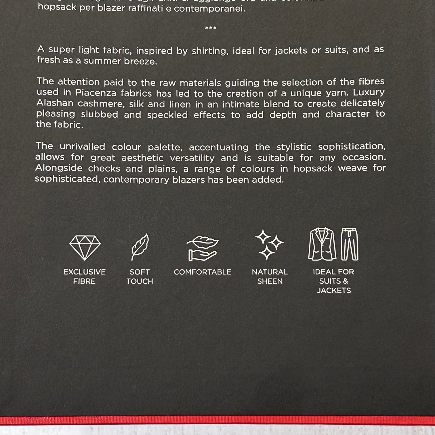 さて、今回は、2025年春夏シーズンに私がオーダーした着心地がとても軽く、艶のきれいな高級ジャケット生地「PIACENZA(ピアチェンツァ)のALASHAN BREEZE(アラシャンブリーズ)」の特徴と魅力についてお伝えさせていただきます。
