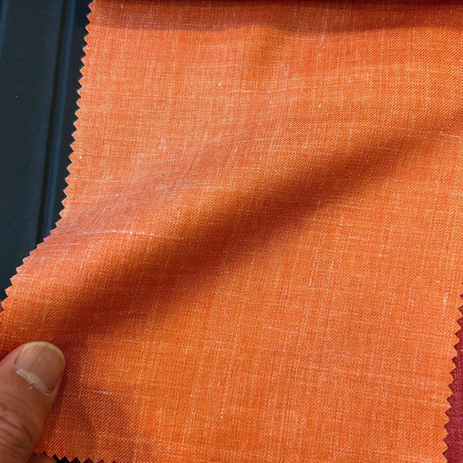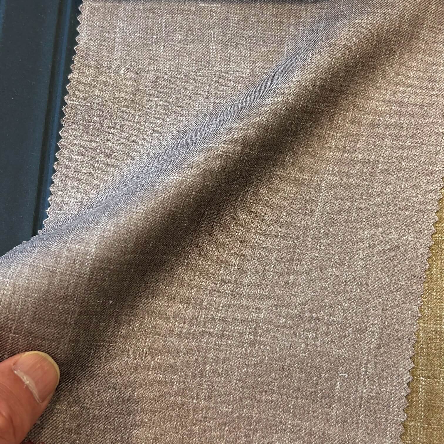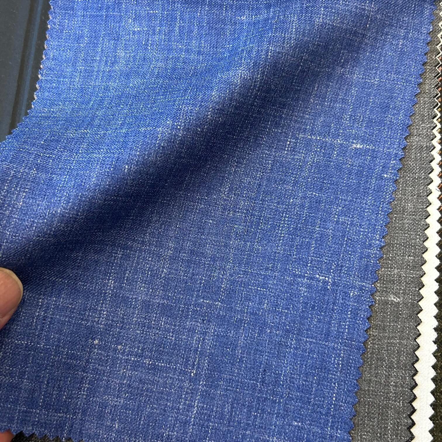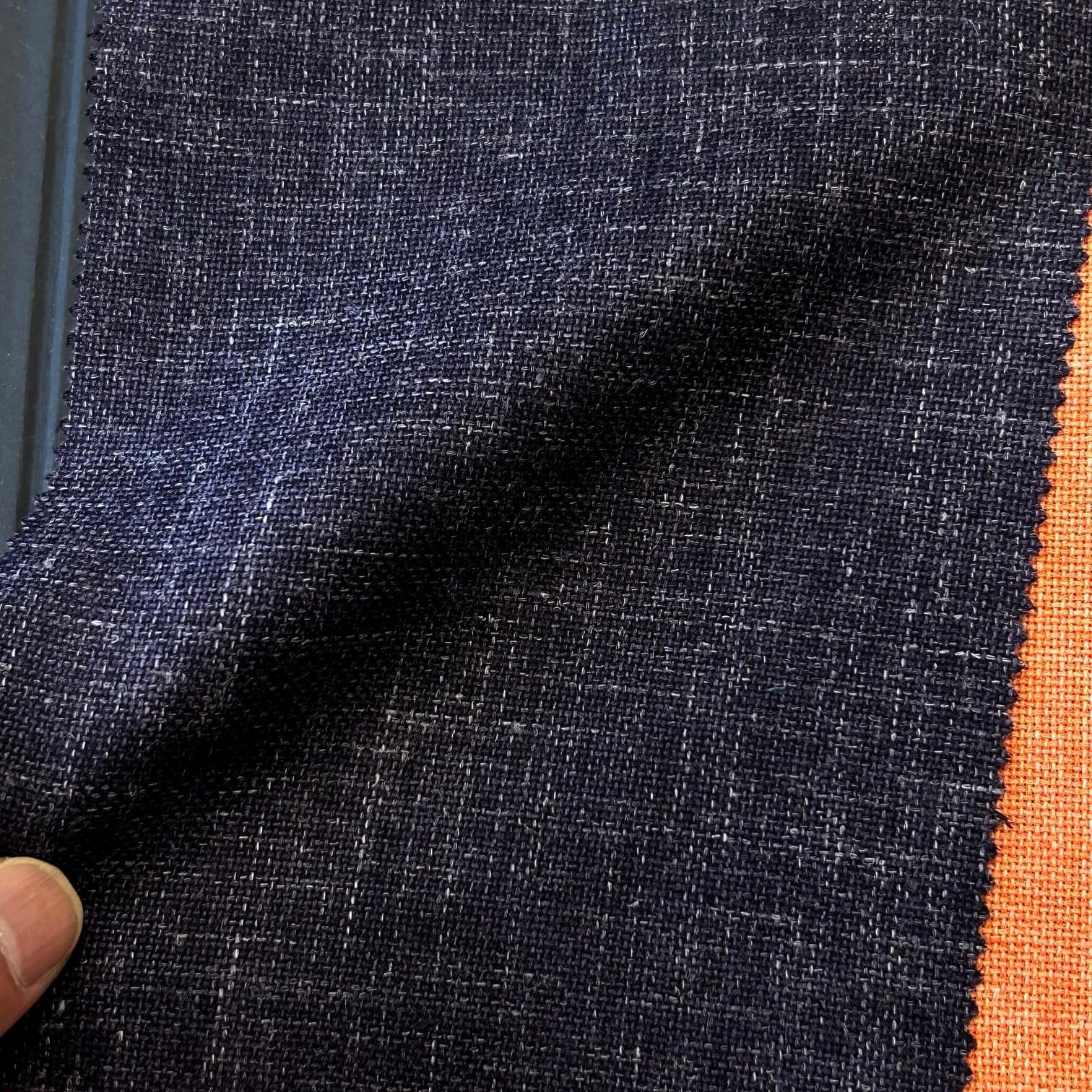 春夏シーズンの定番素材、「ウール・シルク・リネン」のウールの部分を、最高級のカシミヤに変えた贅沢な素材でございます。