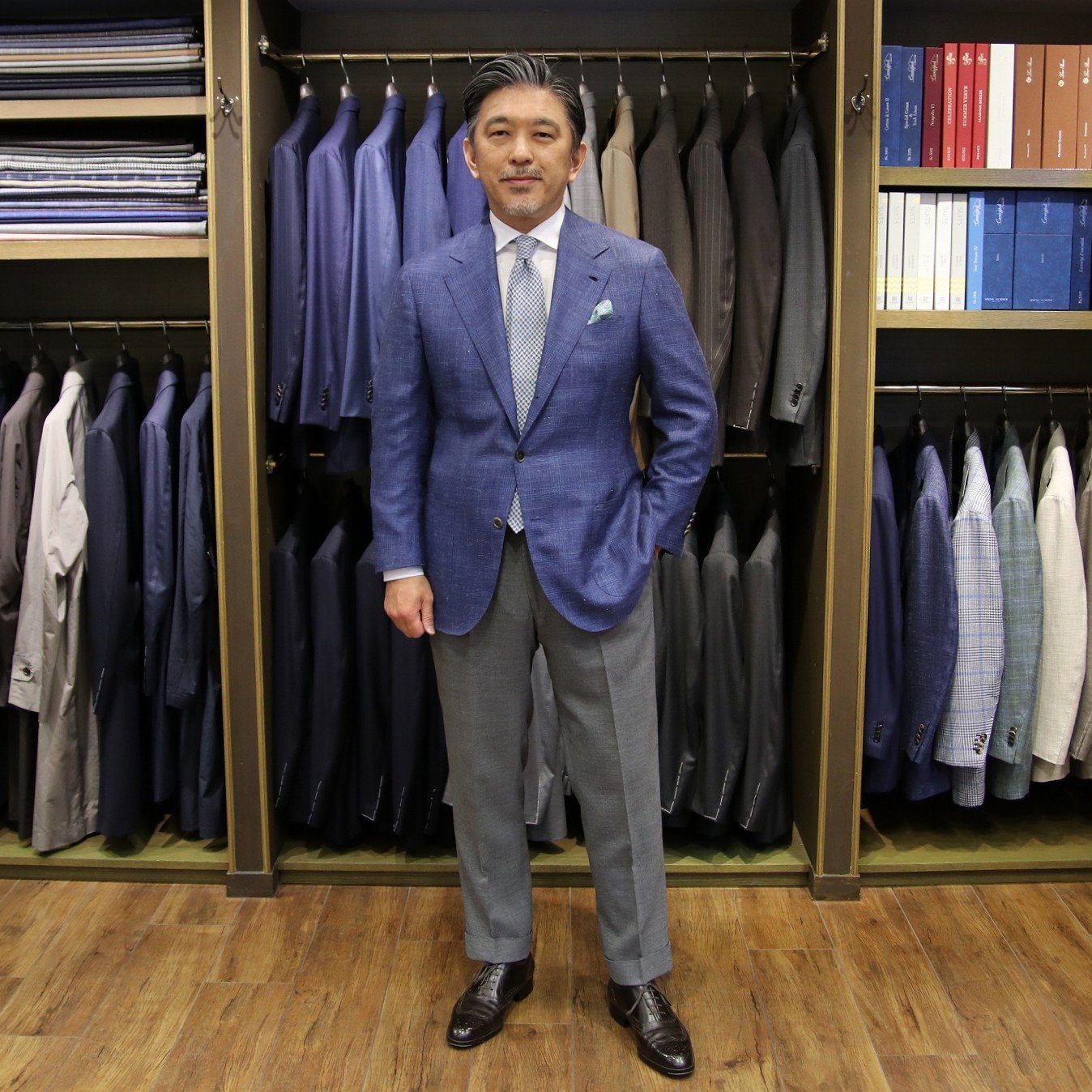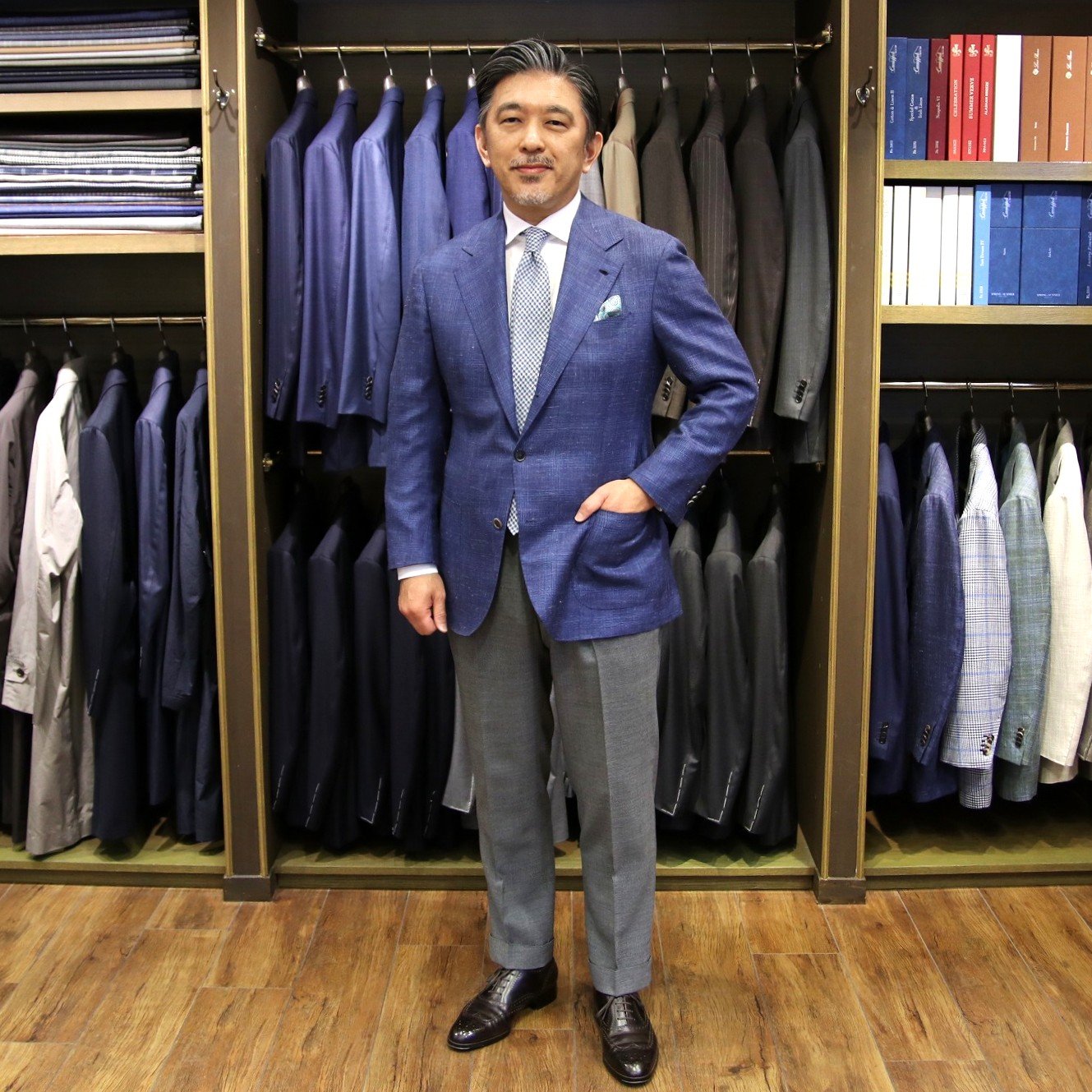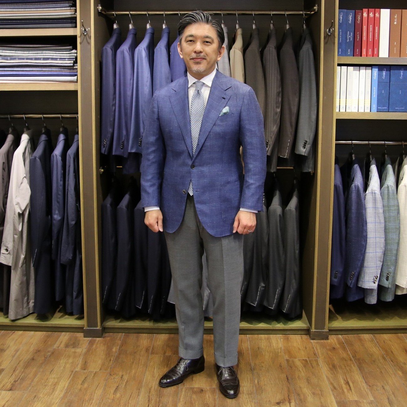 恐らく、アットリーニやキートン、ブリオーニあたりですとジャケットで100万円は余裕で超えて、150万円くらいになるかもしれませんが、当店ですと、その1/3~1/5のとても現実的な価格で、体に合ったものをオーダーいただけます。
