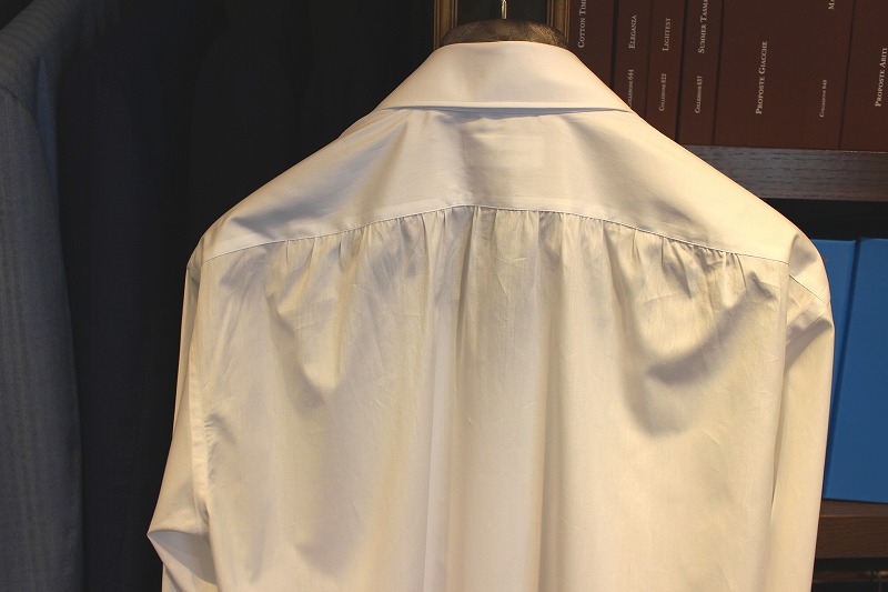 背中(ヨーク)のギャザーも細かくて自然な感じです。