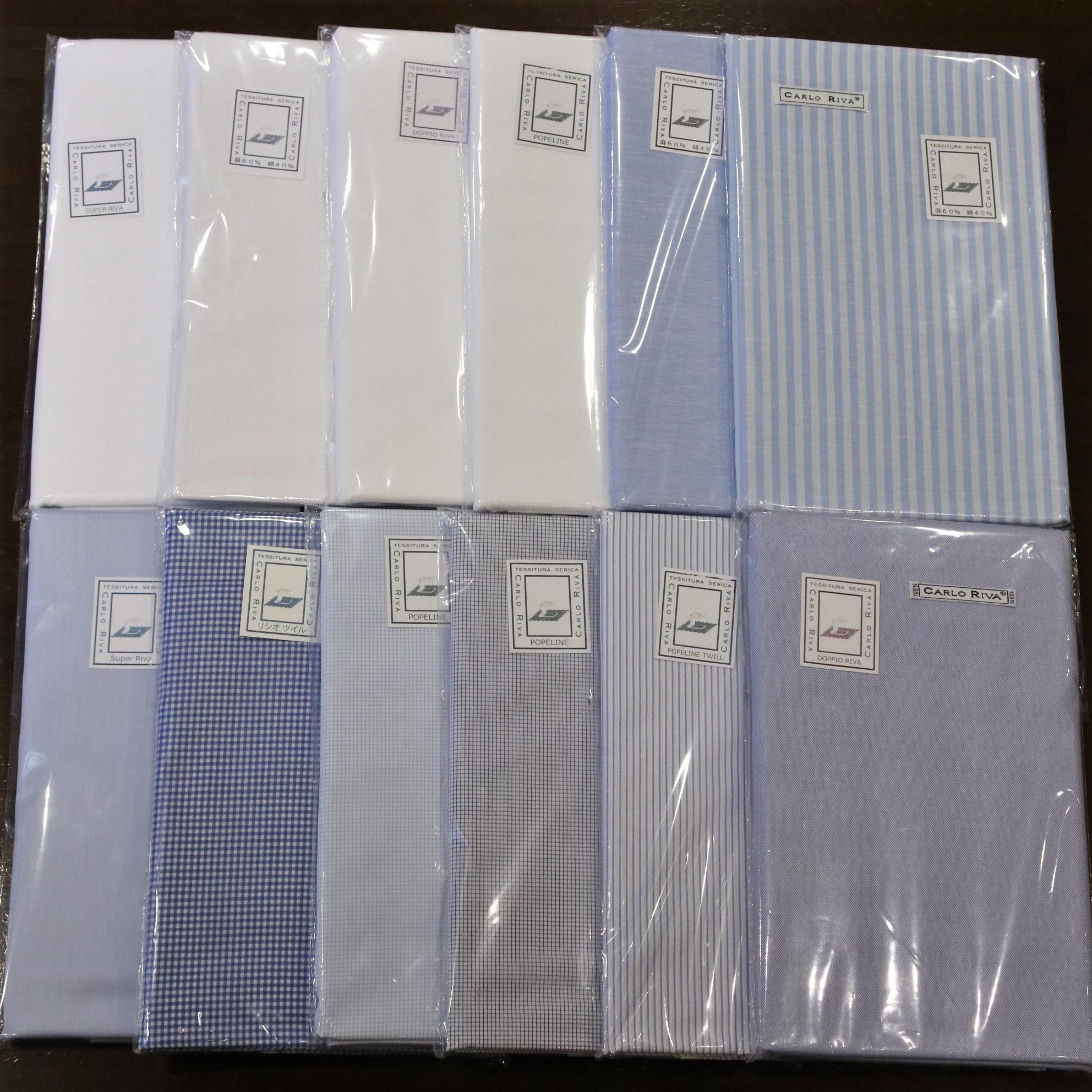 シャツ生地も、スーツやジャケットの生地と同じように、バンチブック(生地見本帳)にてご用意しておりますが、バンチブックで展開されていない生地などは、1着分ずつの生地を買い付けてご用意しております。