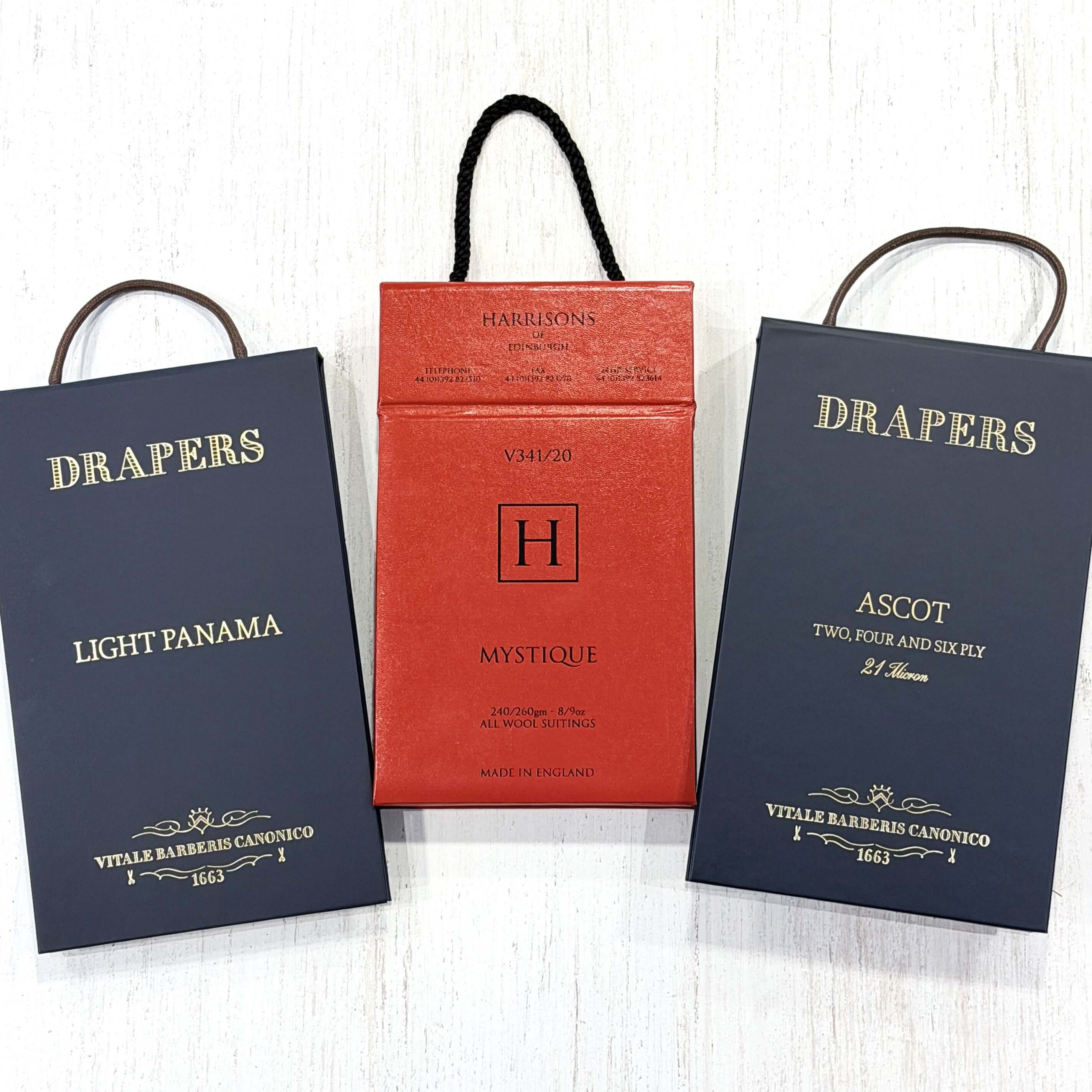 代表的な生地は、DRAPERSのLIGHT PANAMAやHARRISONSのMYSTIQUEなどがございます。どちらも何十年も作り続けられている定番素材です。また、強撚糸を使用し、よりドライタッチに仕上げたDRAPERSのASCOTの2PLYも人気が高いトロピカルウールです。