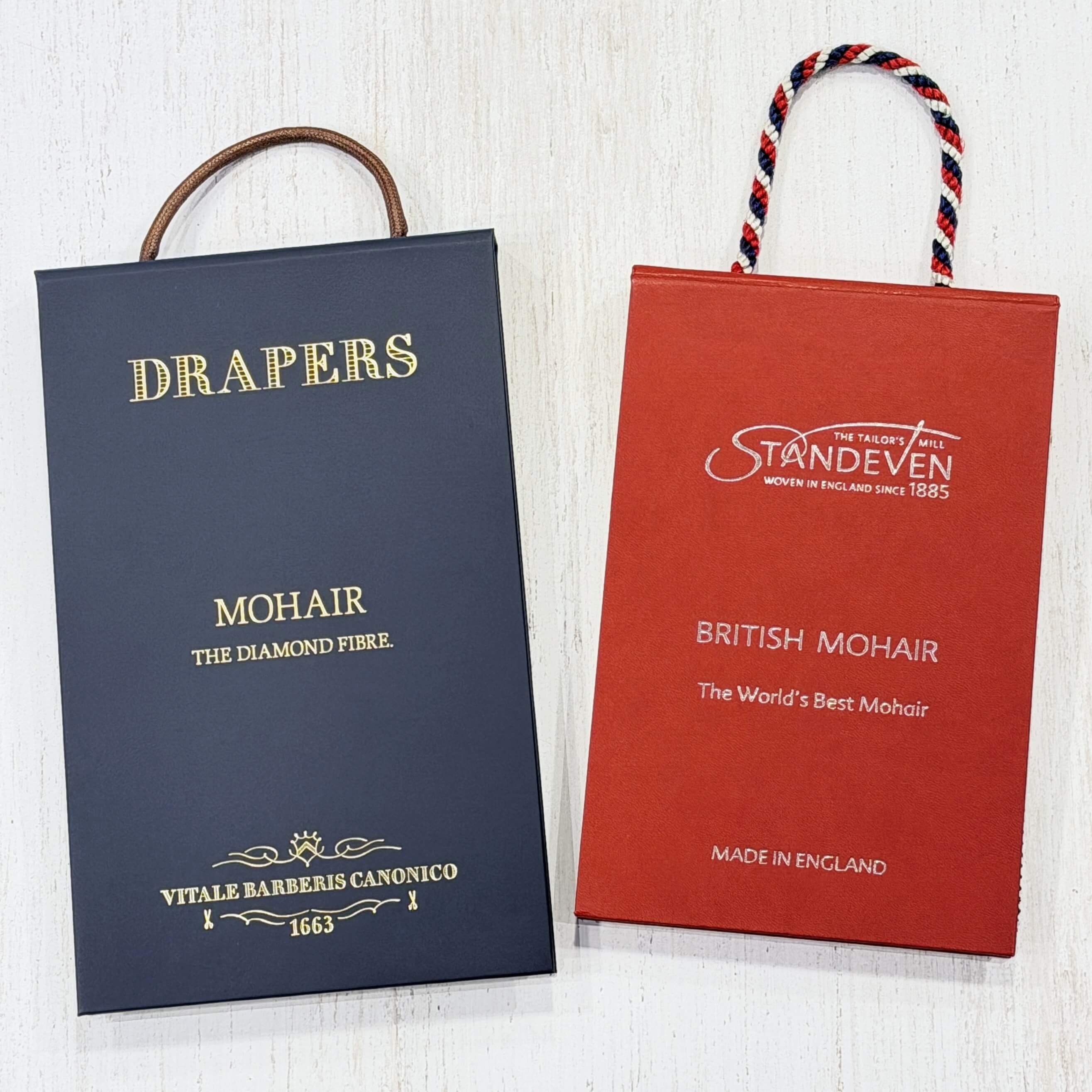 モヘア混ウールの代表的な生地は、DRAPERSのMOHAIR、STANDEVENのBRITHISH MOHAIRなど、イタリアや英国のマーチャントで定番のコレクションがございます。