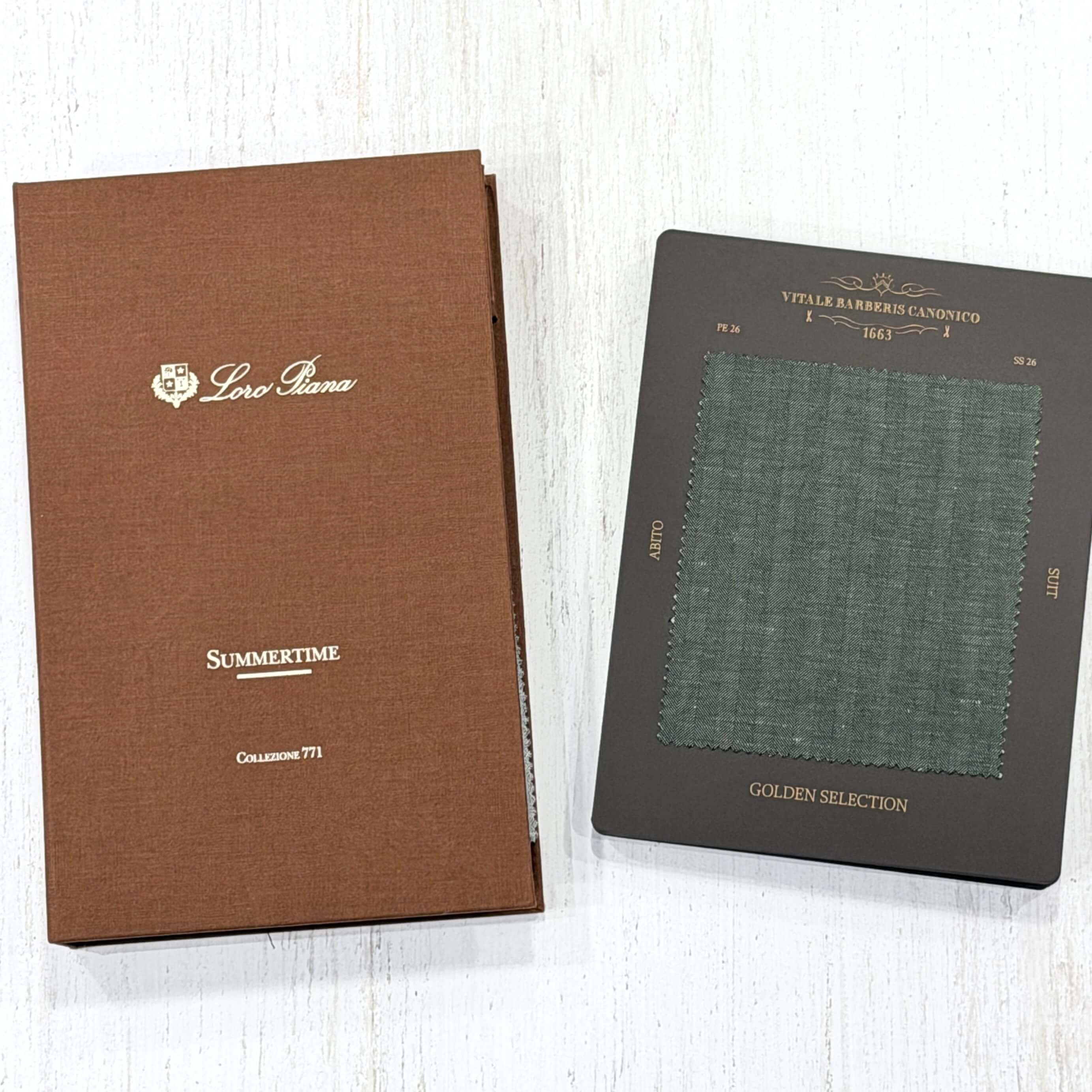 代表的な生地は、LORO PIANAのSUMMERTIMEやVITALE BARBERIS CANONICOのウール・リネンがございます。