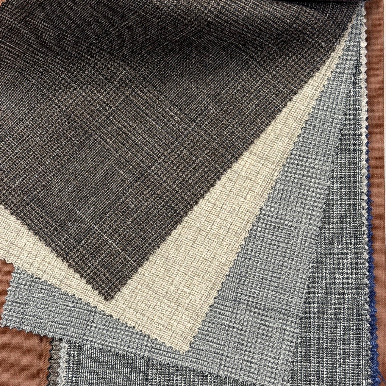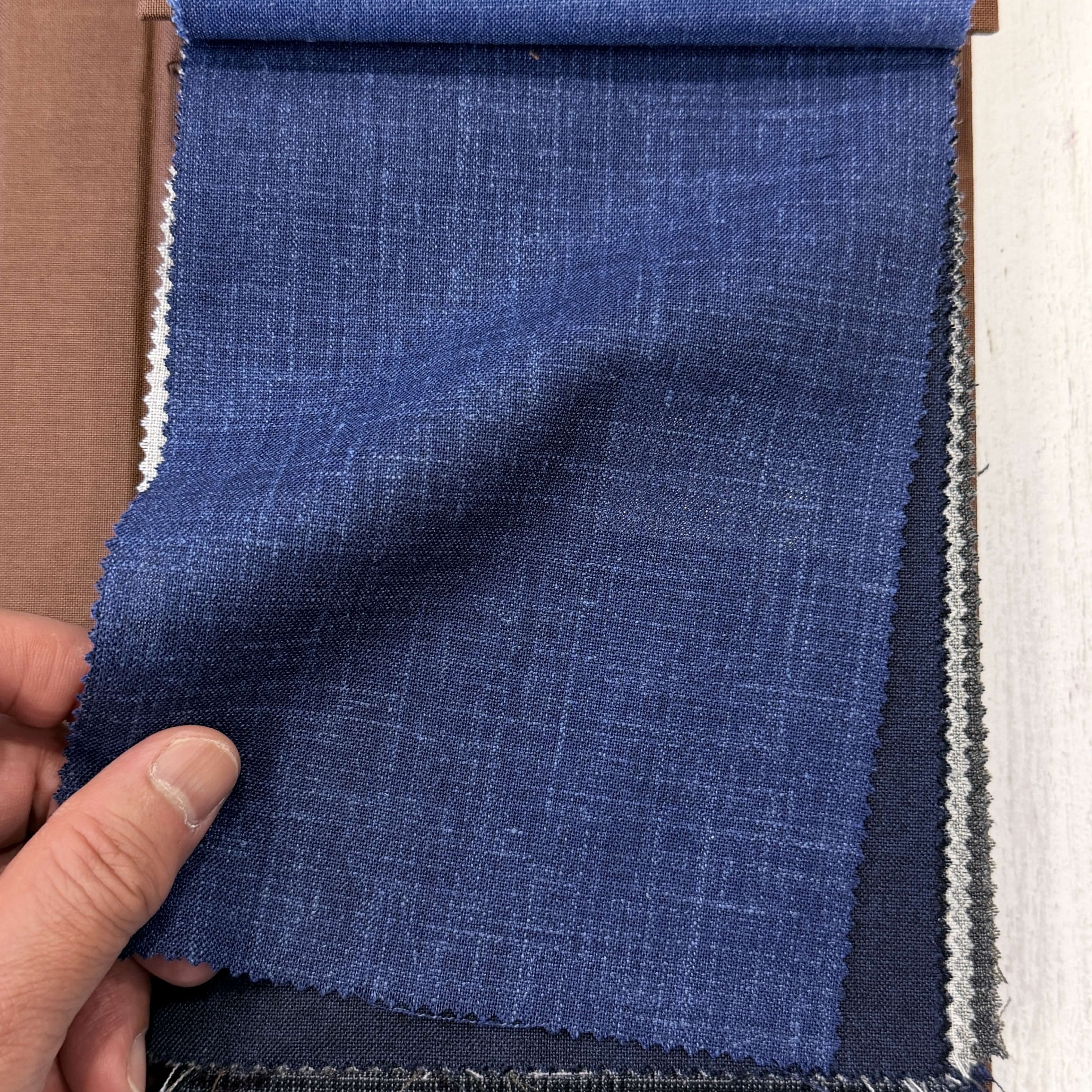 リラックス感のあるスーツやカジュアルライクなセットアップスーツをご検討されている方には、ウール・リネンやウール・シルク・リネン(三者混)など、リネン(麻)をブレンドした軽く清涼感のある生地が良いと思います。