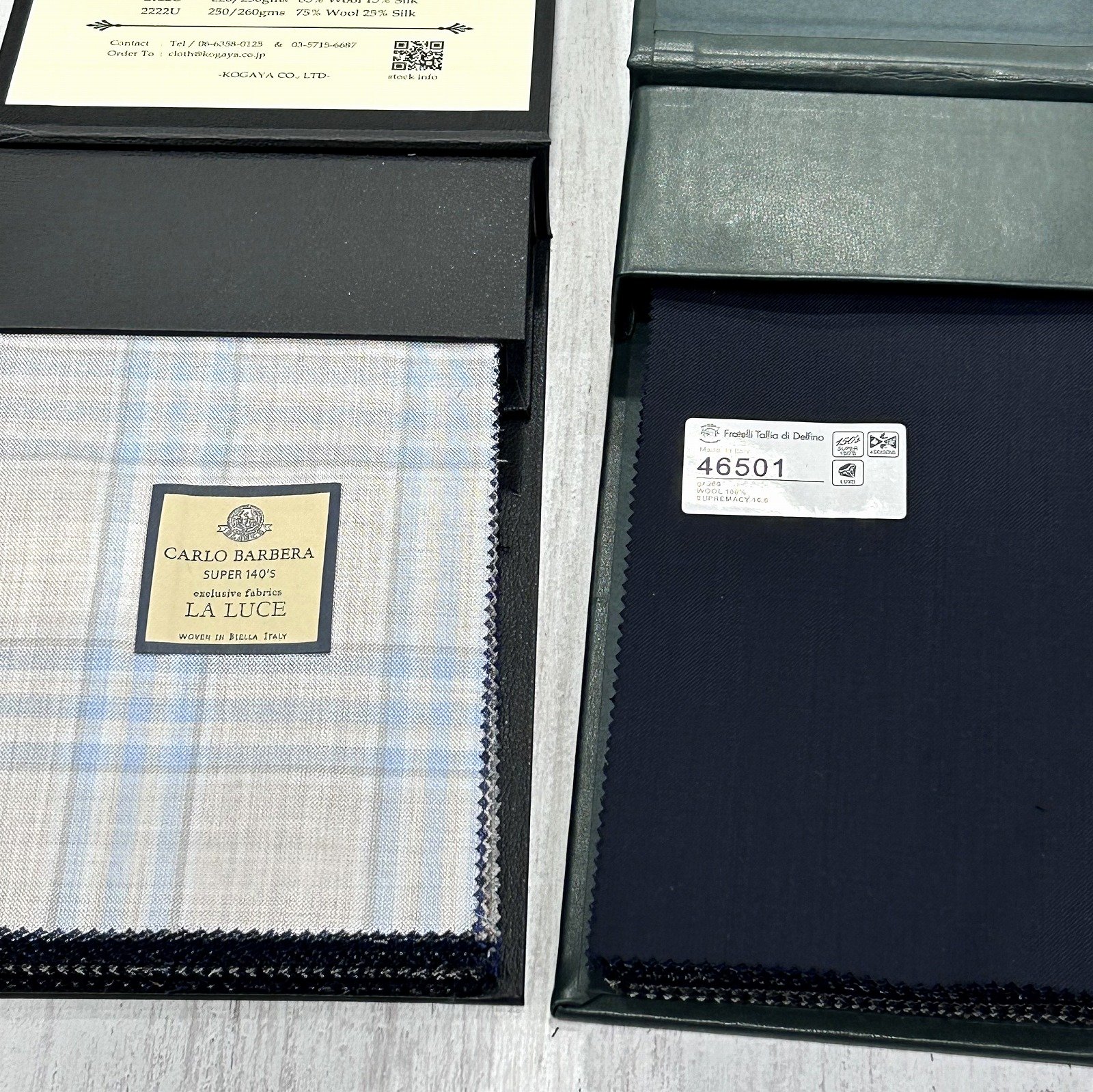 イタリアのハンドメイド高級ブランド・KITON(キートン)の傘下で、洋服好きに愛好家が多いCARLO BARBERA と、LORO PIANAやCloth Ermenegildo Zegnaと並ぶイタリアの3大生地メーカーのTALLIA DI DELFINOは、日本国内に生地のストックが有る為、非常にコストパフォーマンスが高い生地をお選びいただけます。