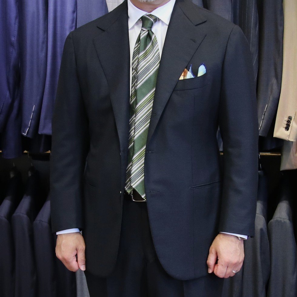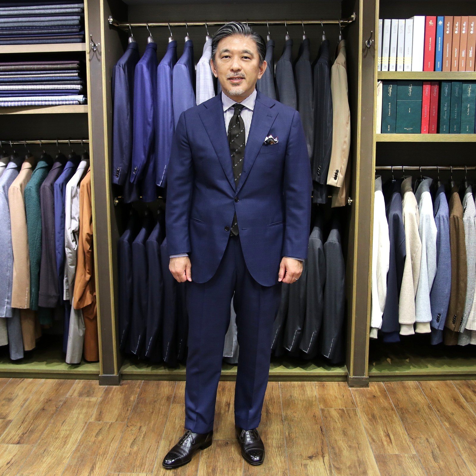 どの季節にも着ることが出来て、どんなシーンでも間違えの無いスーツとして、まずはダークカラーのスリーシーズンスーツを1着オーダーいただくのが良いと思います。