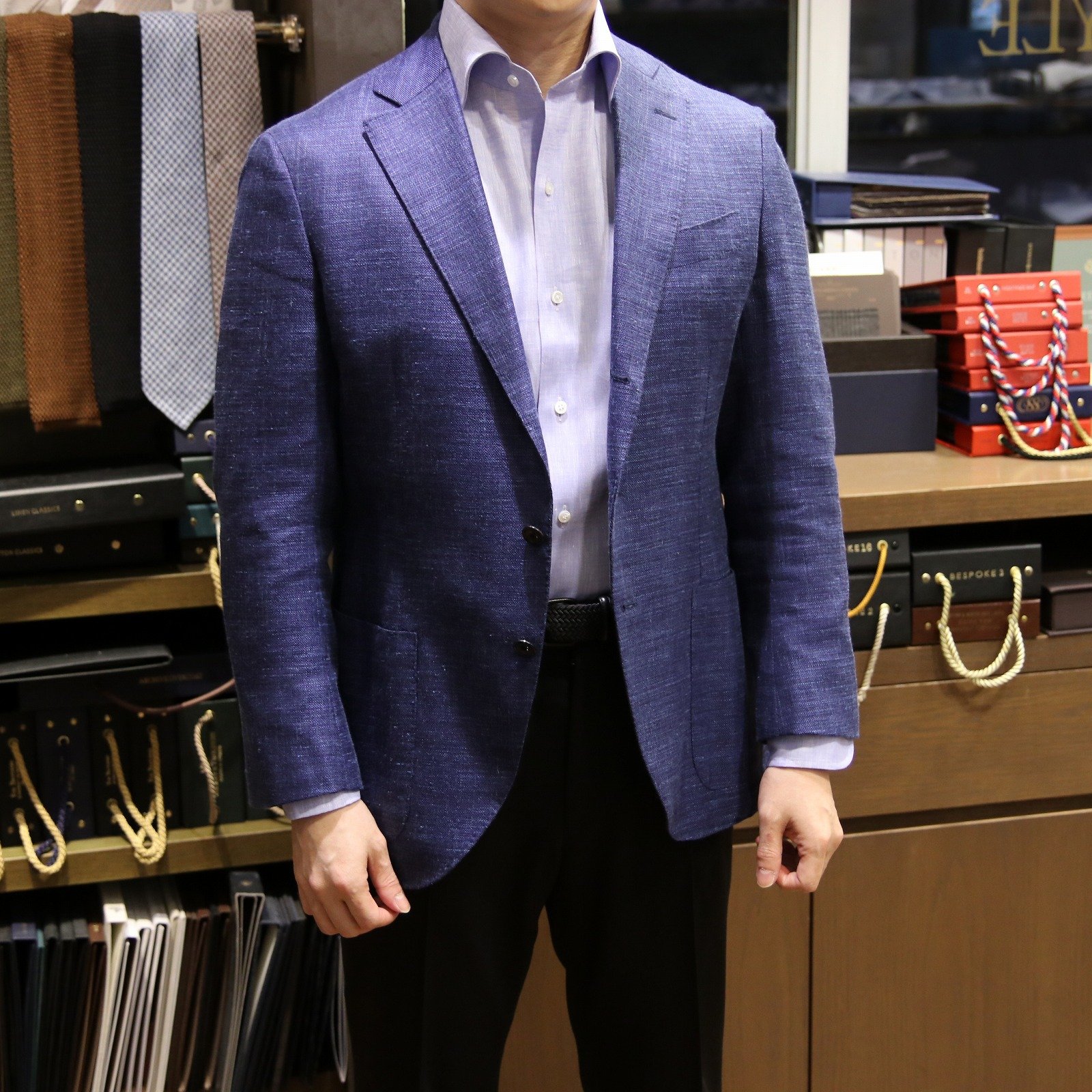 希少な生地で仕立てることもオーダーならではの楽しみで、一期一会の出会いもありますので、出来るだけ多くの生地見本を揃えるようにしております。