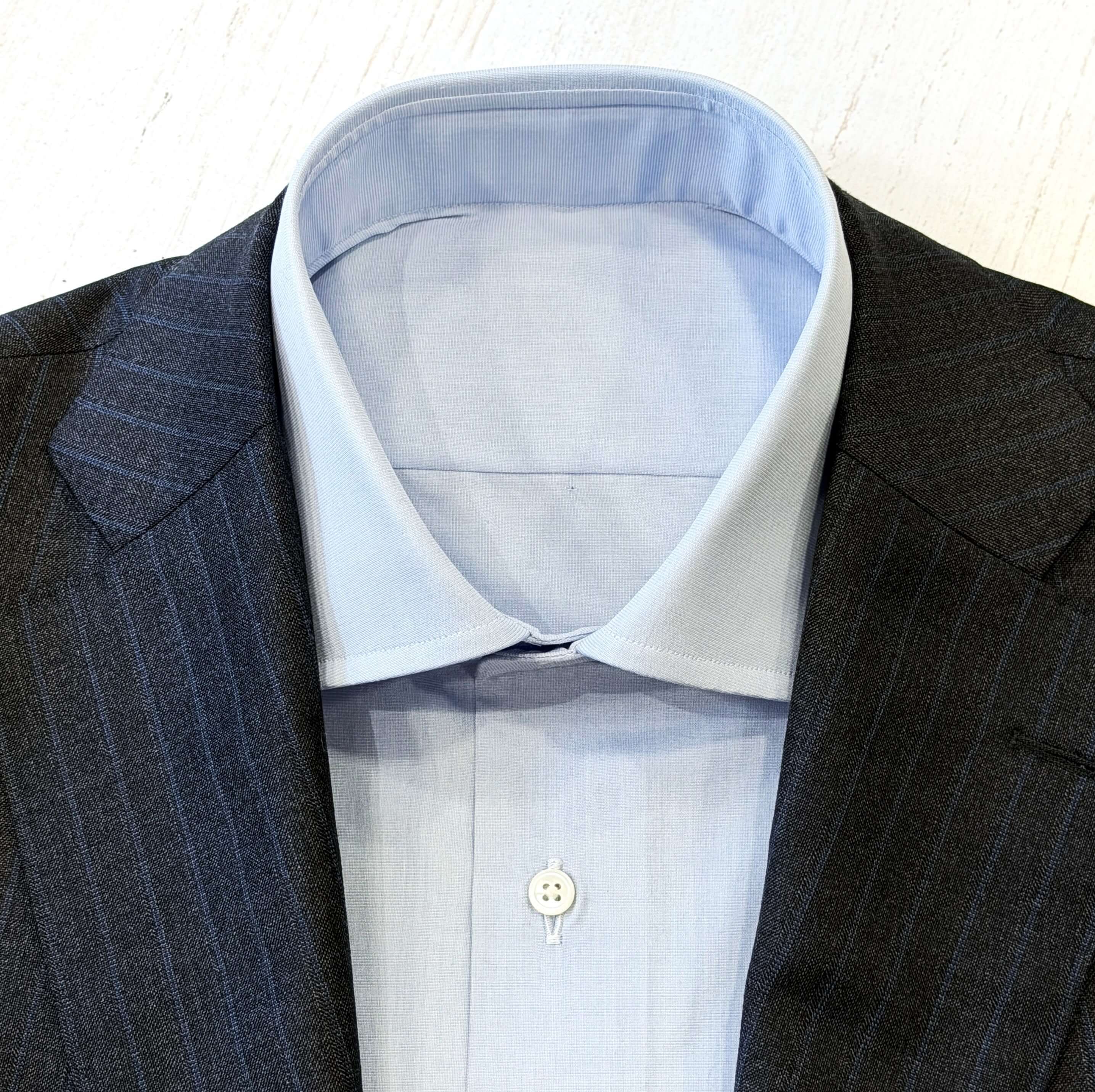ジャケットからシャツの衿が跳ねて出てしまうのを気にされるお客様も多く、ご要望に合わせていろいろな衿型で対応しています。