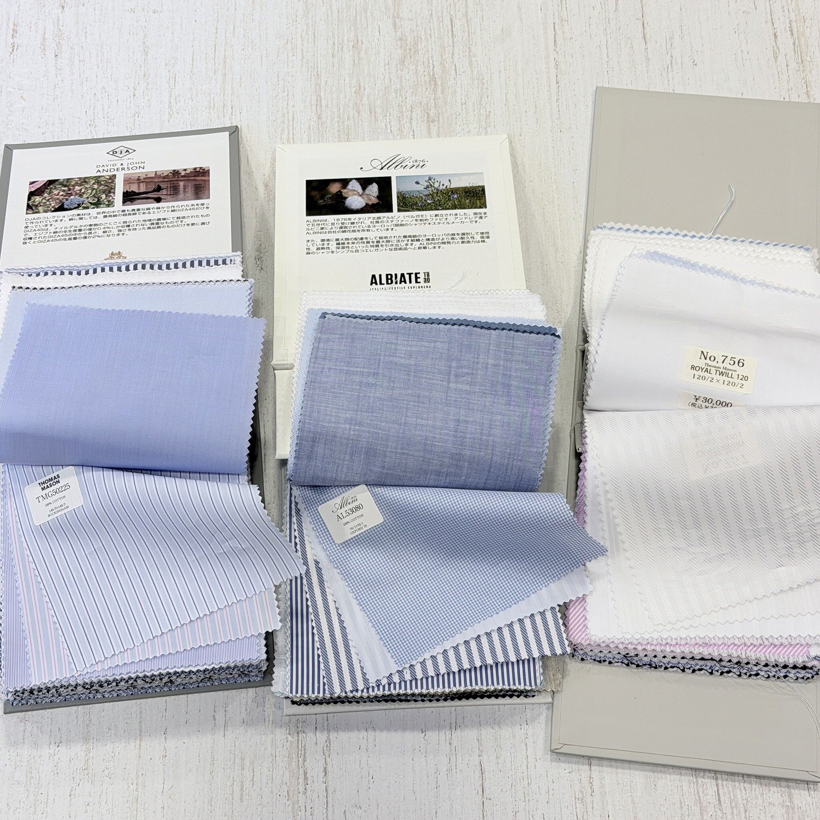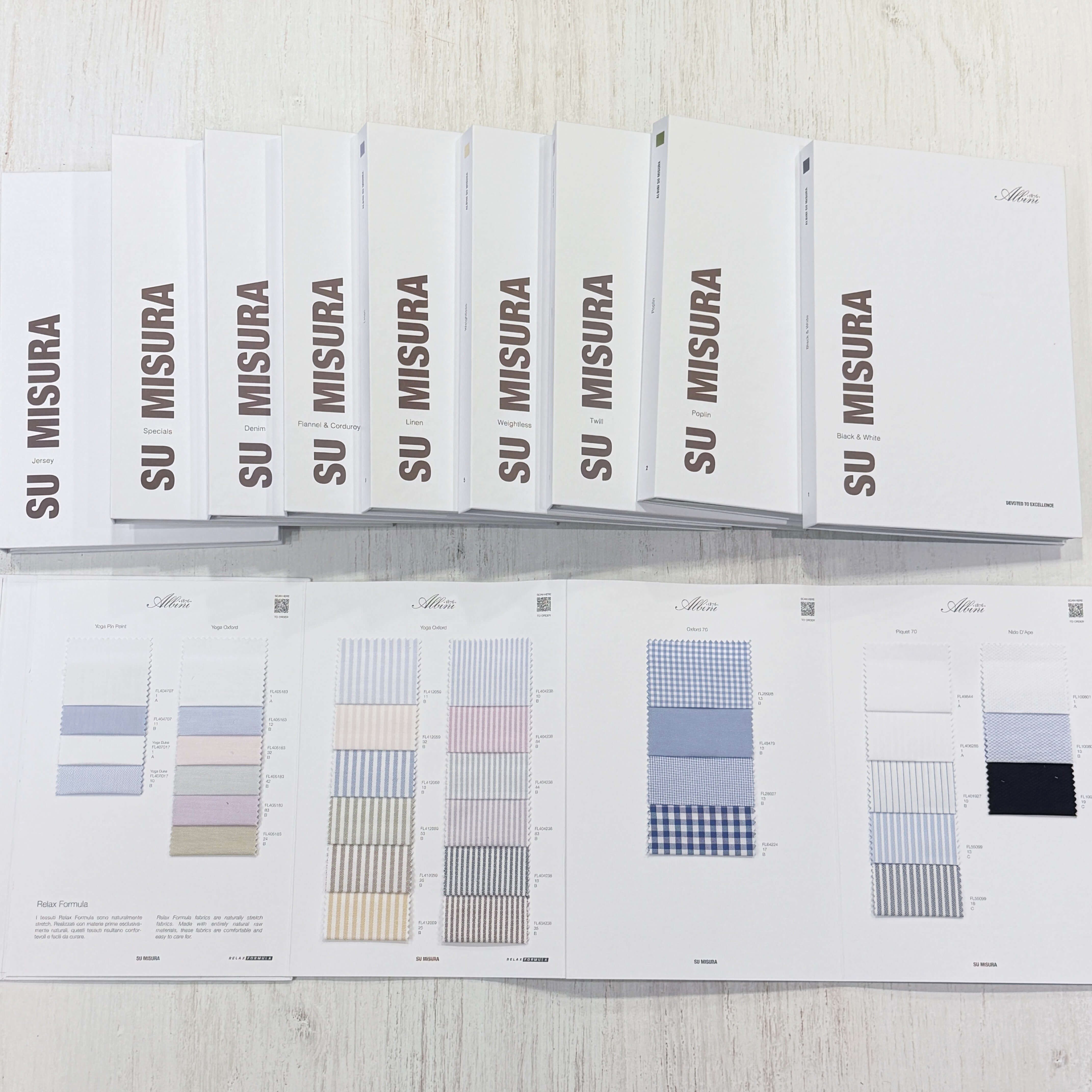 ヨーロッパ最大規模のシャツ生地メーカー・アルビニ社のテーラー向けバンチブックが、アルビニ ス・ミズーラ(Albini Su Misura)です。このバンチブックも、日本では十数店舗のみにしか配布されていないコレクションです。