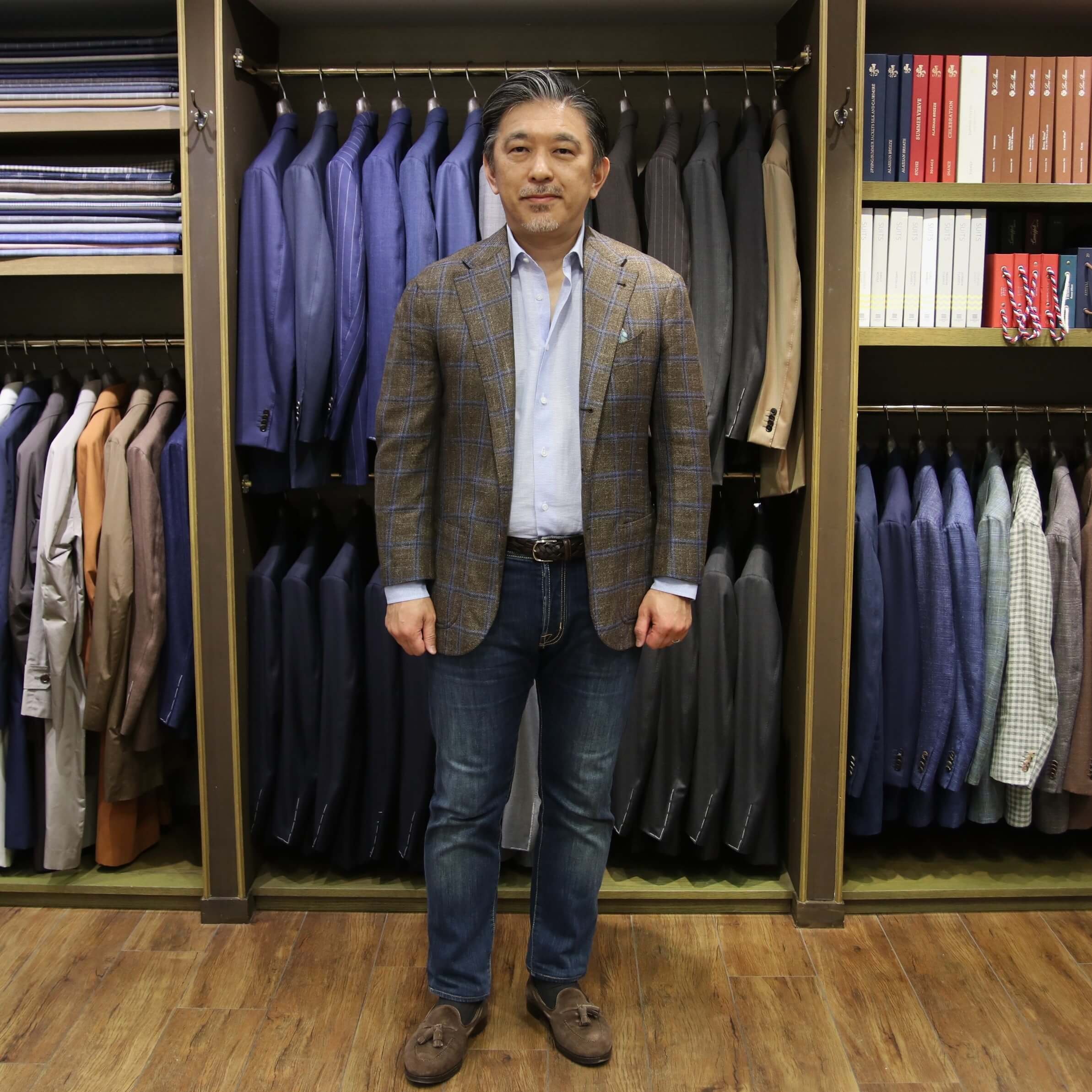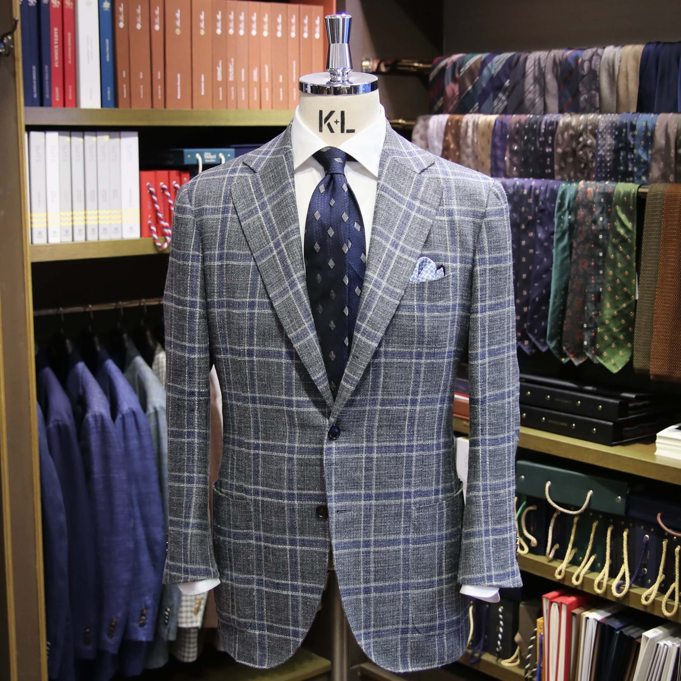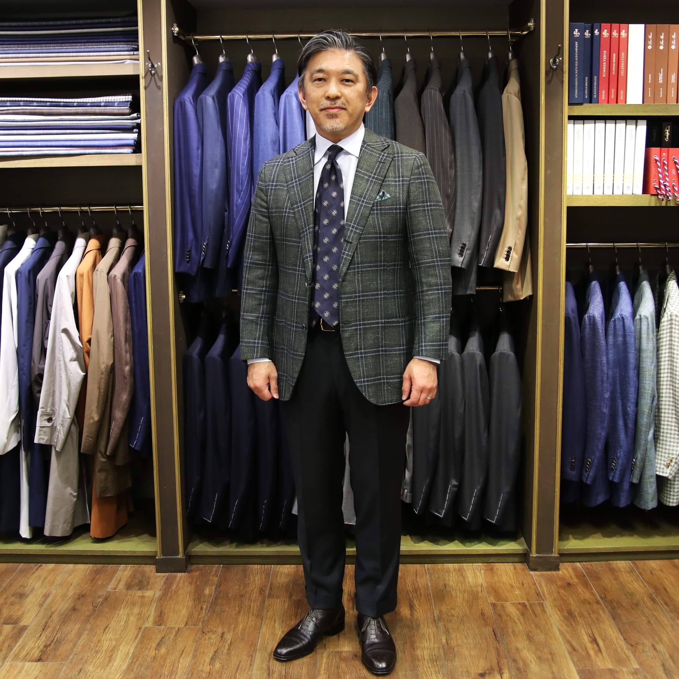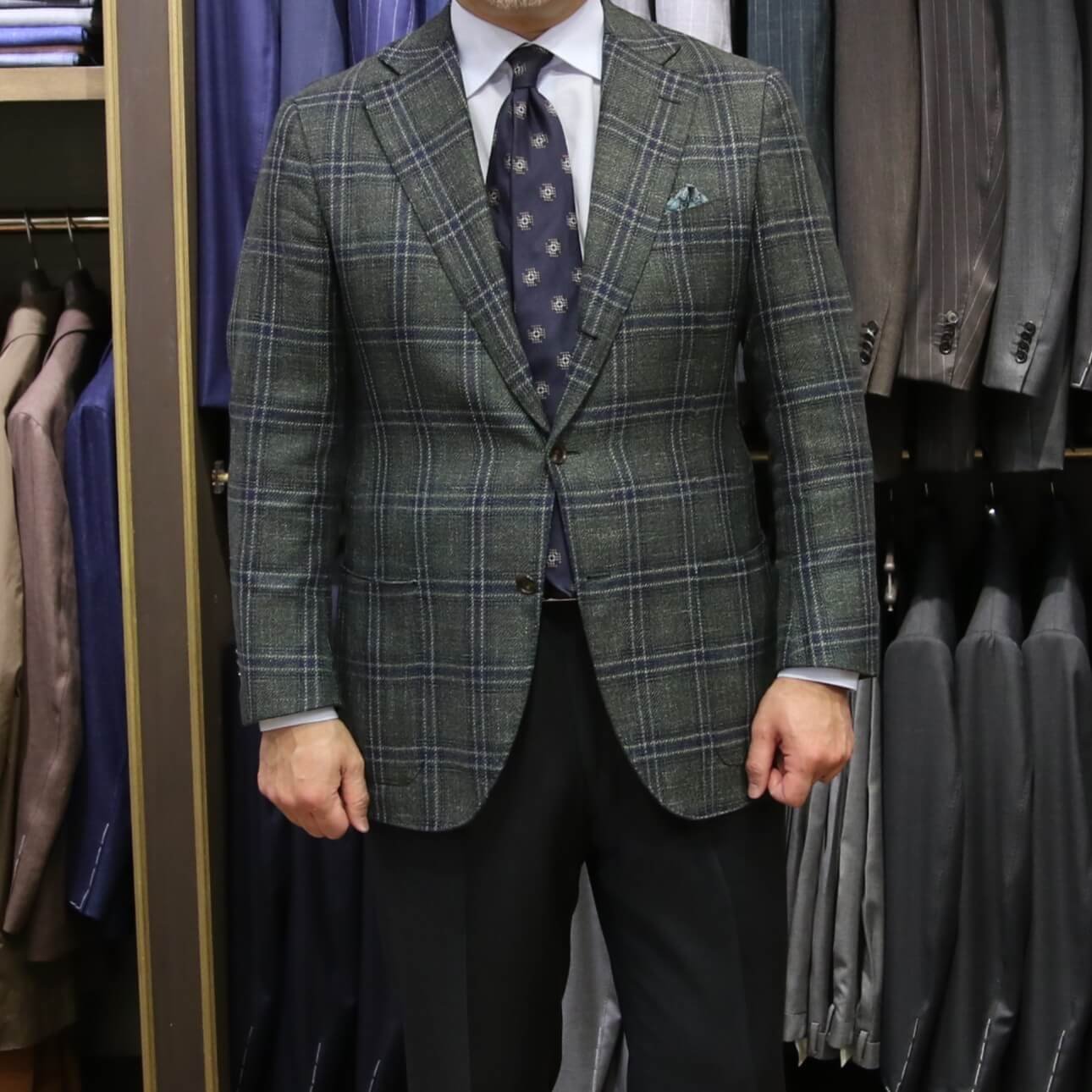 ショップには、今回ご紹介しましたものも含め、様々な色柄でオーダーしたジャケットを展示しておりますので、実際に手に取ってご覧いただけますし、ご試着も可能です。