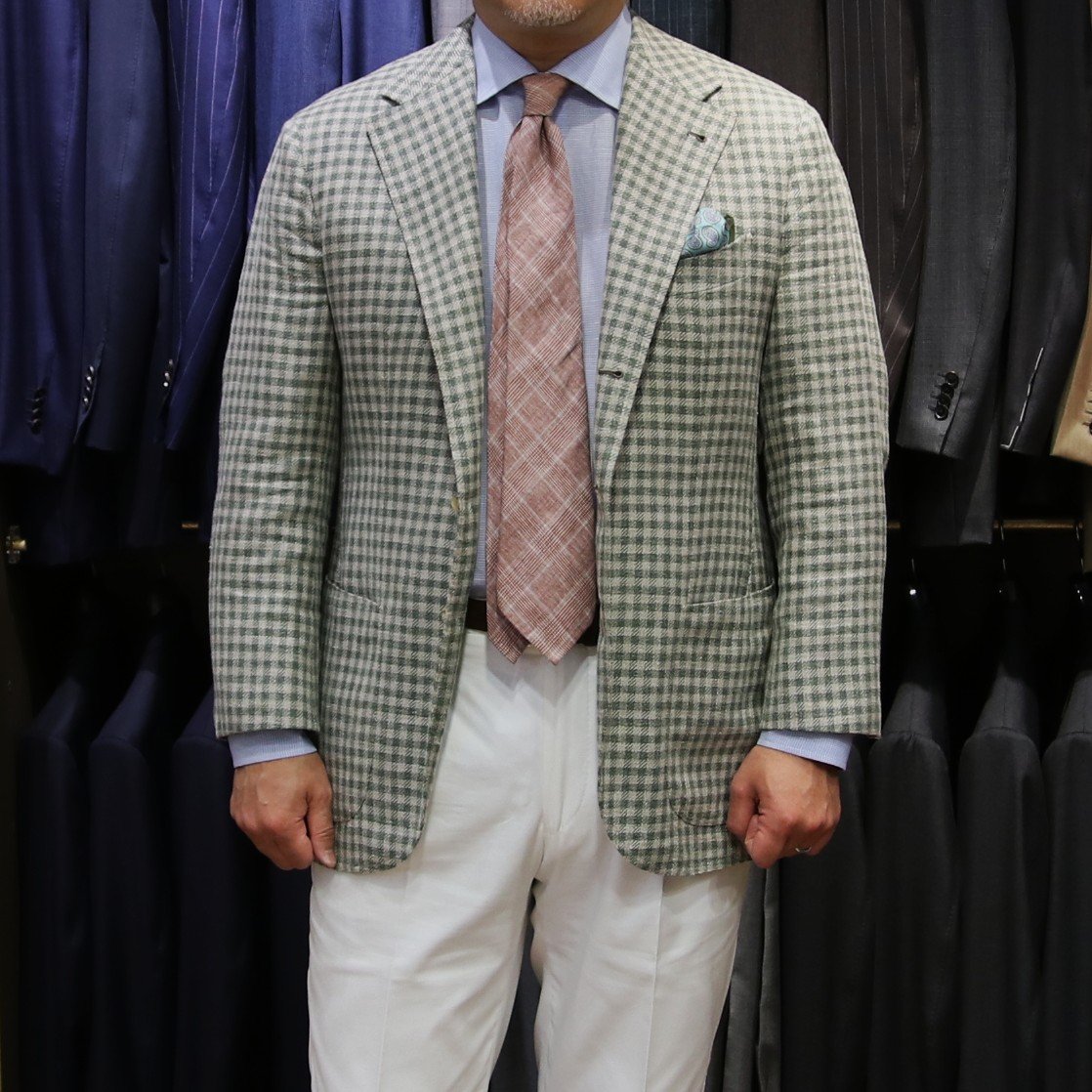 私がオーダーしたサマーツイードのジャケットとそれに合わせたコーディネートをご紹介いたします。ぜひ、皆様がオーダーされる際のご参考にしてみてください。