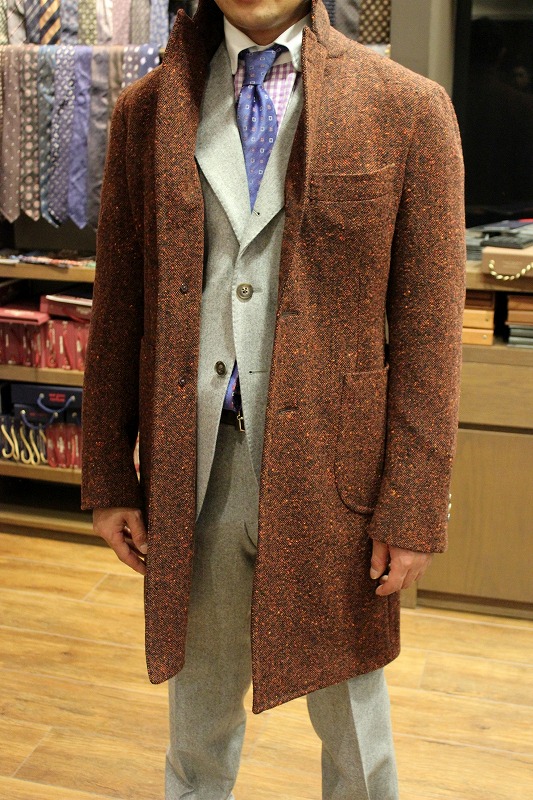 Model:BLACK LABEL SINGLE CHESTER COAT SENZA INTERNOFabric:HOLLAND&SHERRY DONEGAL TWEED