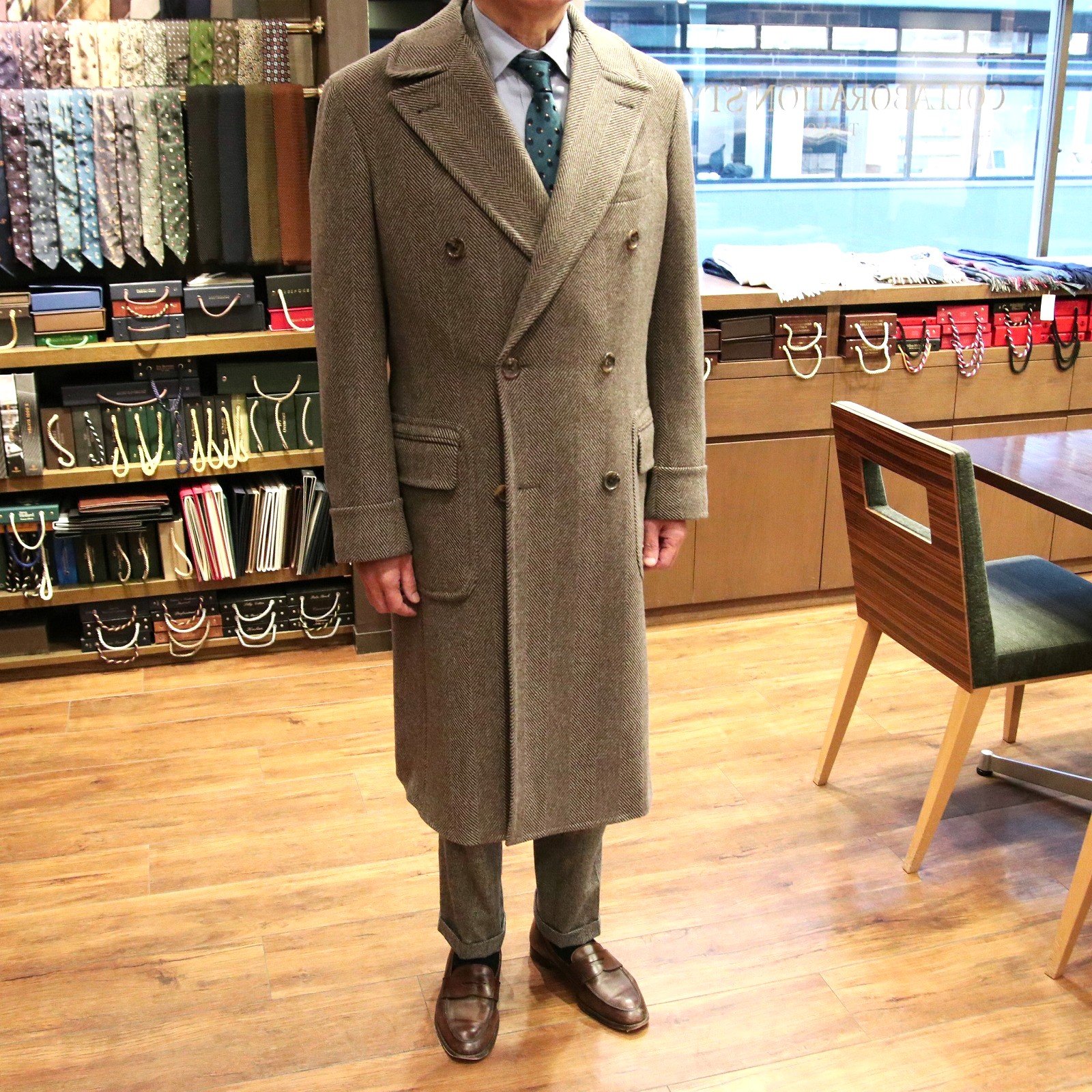 Model:DOUBLE CHESTER COAT(COMFORT)Fabric:DRAPERS Wool,Alpaca,Mohair,Silk&Polyamide